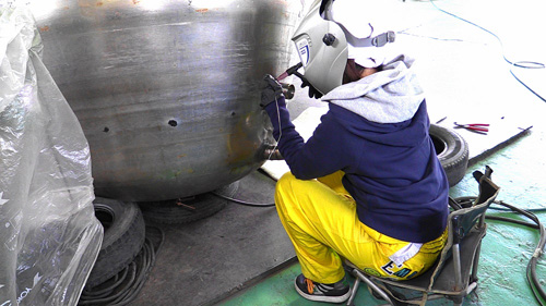 丸くなってるところにシートを貼るって、結構大変なんよ。